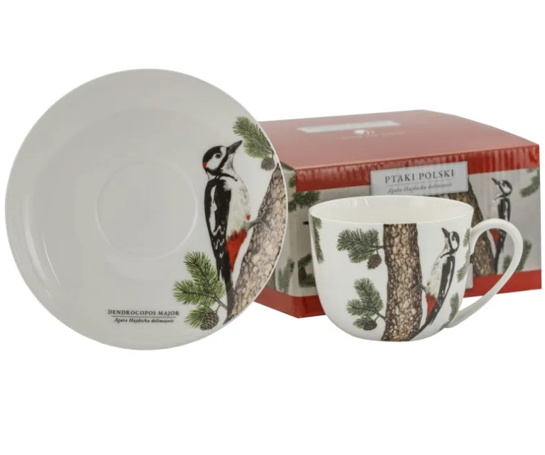 FILIŻANKA Z TALERZYKIEM 280 ML DZIĘCIOŁ POLSKI PTAK