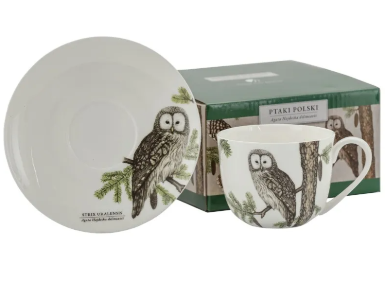 Wybierz filiżankę z talerzykiem „Polski Ptak – Puszczyk” 280 ml i odkryj nową jakość picia ulubionej kawy lub herbaty – z nutą natury i wyjątkowego stylu! 🌿🦉