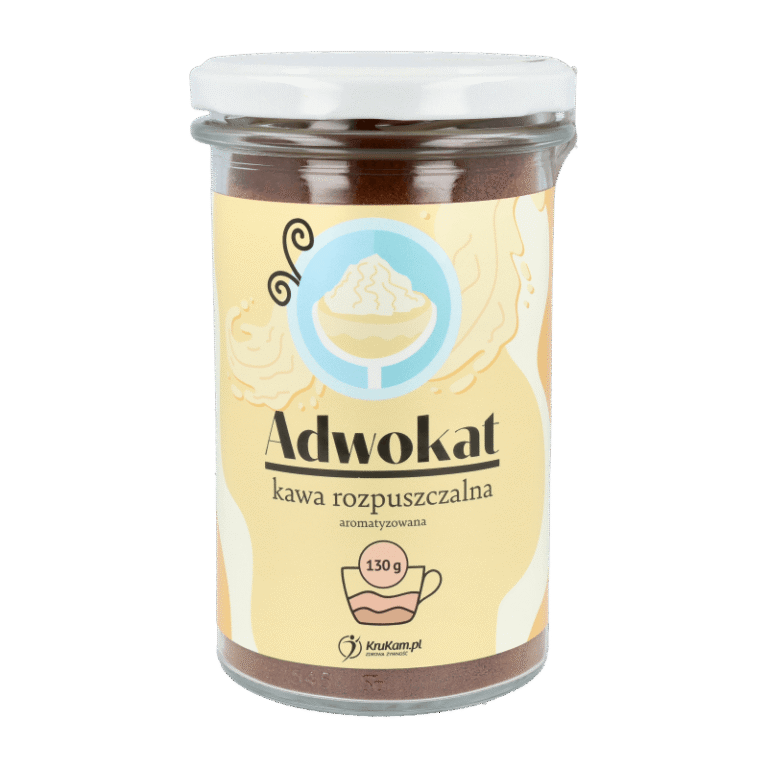 Szukasz kawy, która wyróżnia się wyjątkowym, deserowym aromatem? Kawa rozpuszczalna Adwokat od KruKam to idealna propozycja dla osób, które lubią delikatną słodycz i kremowe nuty w swojej filiżance. Połączenie klasycznej kawy rozpuszczalnej z aromatem inspirowanym likierem adwokat daje napój o ciepłym, przyjemnym charakterze – idealny na chwilę relaksu, popołudniową przerwę czy słodkie zakończenie dnia.