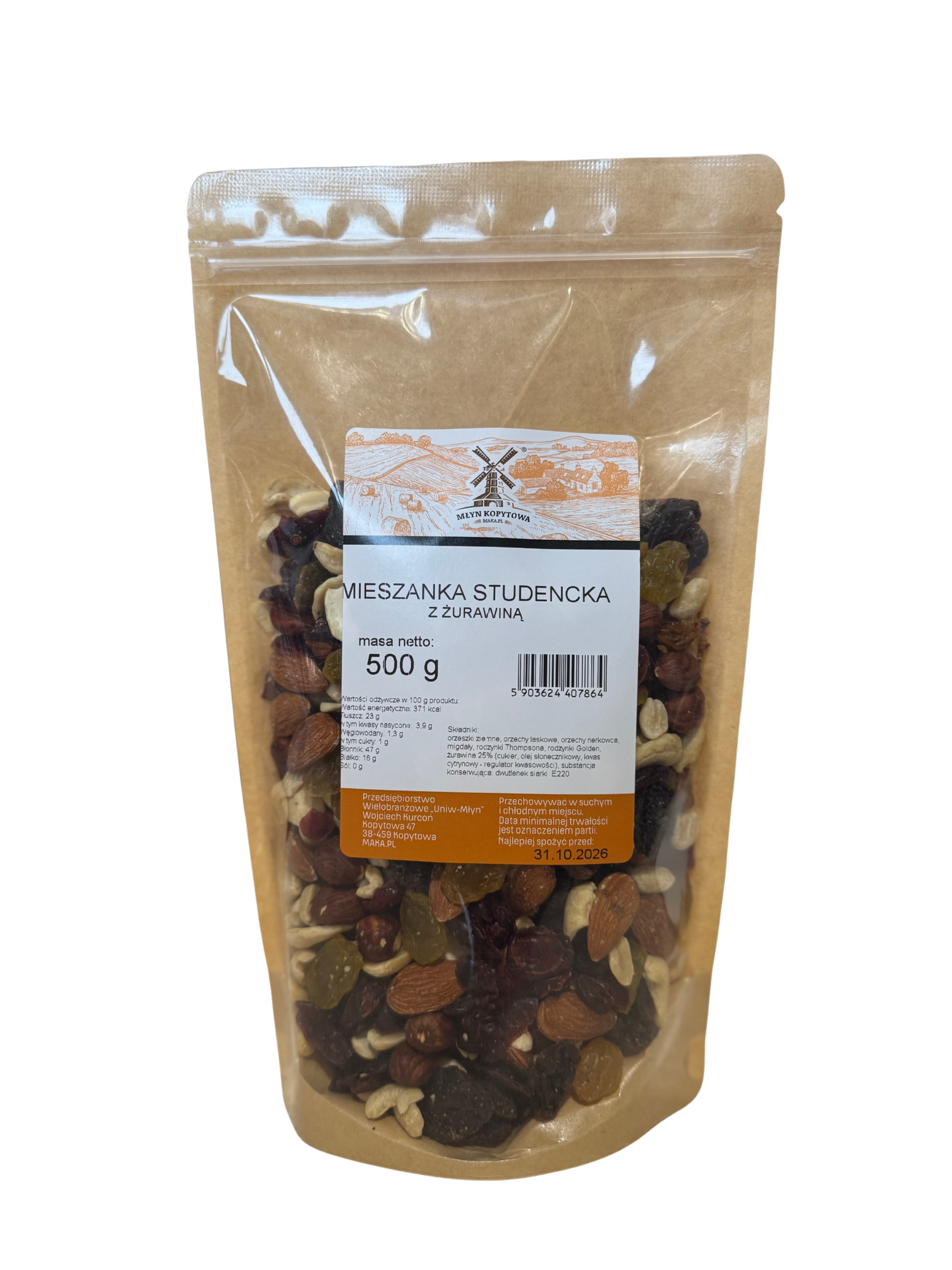 MIESZANKA STUDENCKA Z ŻURAWINĄ 500G MŁYN KOPYTOWA