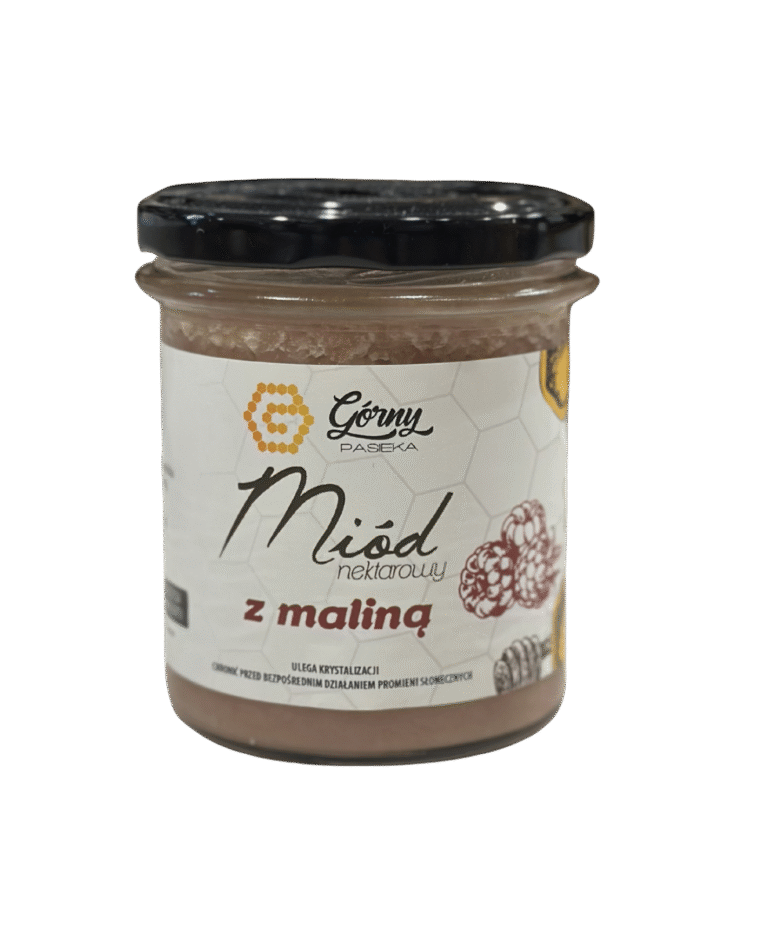 Wybierz Miód Nektarowy z Maliną – Pasieka Górny i zatrać się w połączeniu słodyczy miodu z intensywną maliną.