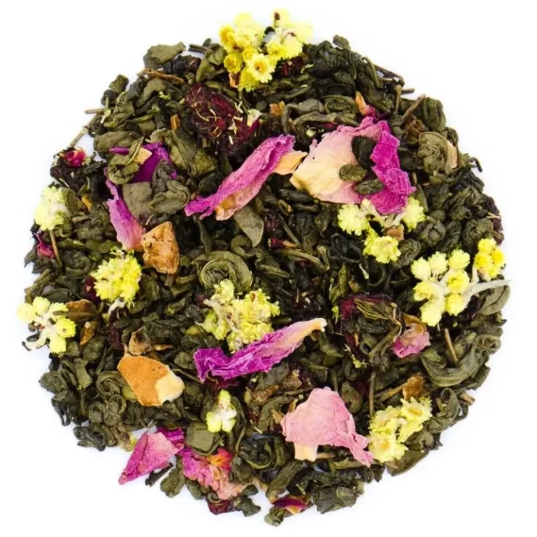 | skład | herbata zielona Gunpowder, skórka cytrynowa suszona, wiśnia liofilizowana, kwiat kocanki, płatki piwonii, aromaty |